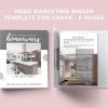 - 8-page Home Marketing Binder Template layout for US Letter size, 8.5″ x 11″ (7 page inserts + 1 cover page to place in the front of the binder). THE PHYSICAL BINDER ITSELF IS NOT INCLUDED.